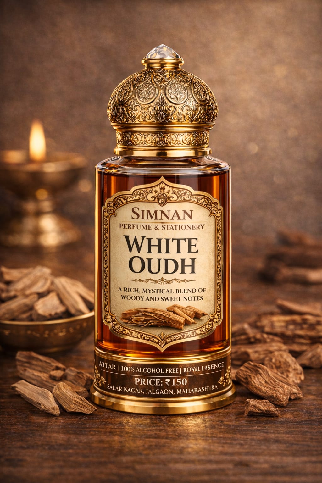 A premium quality Attar that offers a royal essence. This 100% alcohol-free fragrance provides a deep, calming, and sweet woody experience.